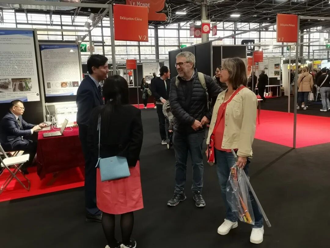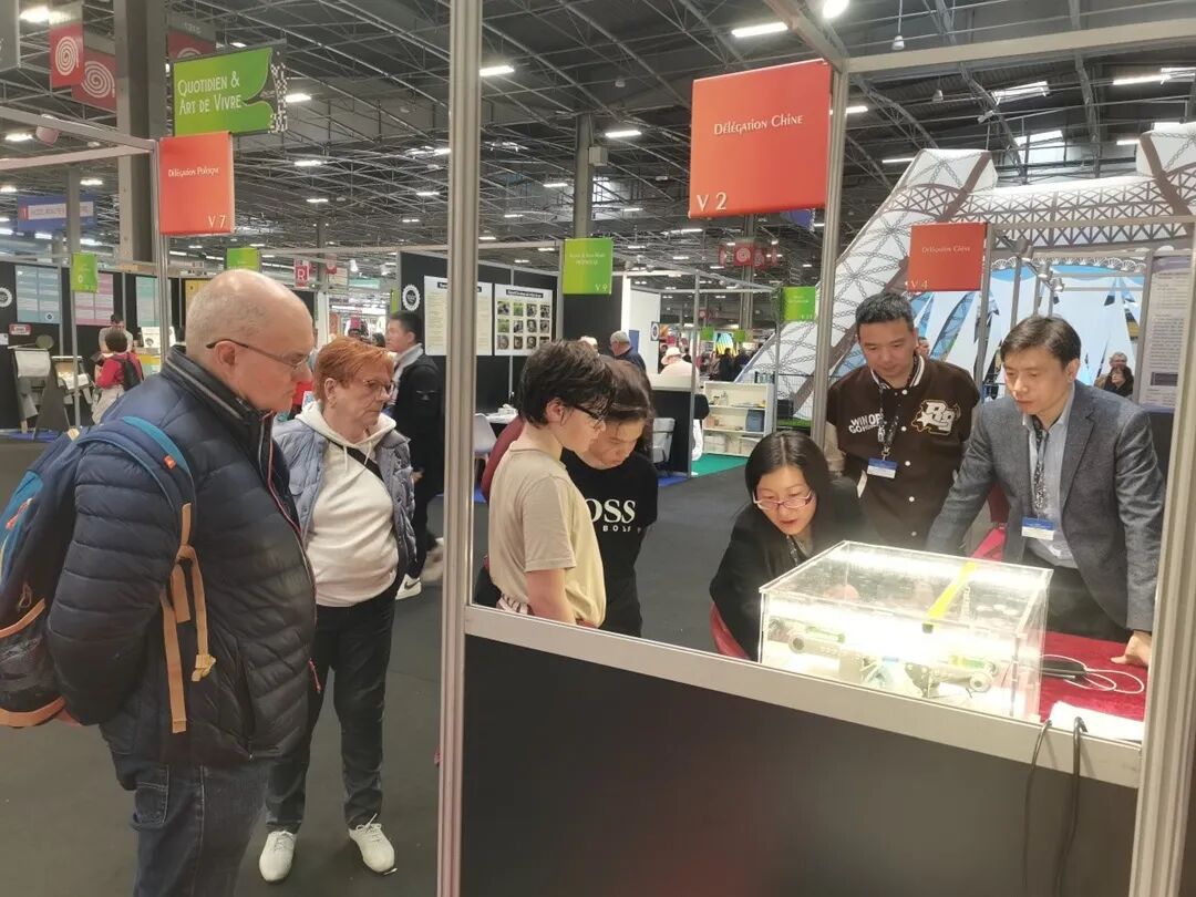 中国驻法国大使馆科技处陈国胜参赞到展馆听取团员项目汇报并出席颁奖活动