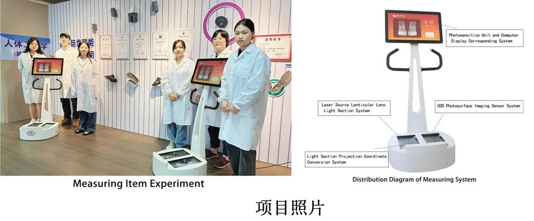 “光学技术智造脚型测量仪”采用多角度光学技术构建精确多维脚型模型。激光源柱面镜光切系统产生高质量平面光,光敏单元与计算机精确对应。实现了光敏单元与计算机显示像素点的一一对应,确保了从光敏面图像到计算机显示图像的精确转换,进一步提高了测量的精度和可靠性。创新了光带中轴快速跟踪算法。