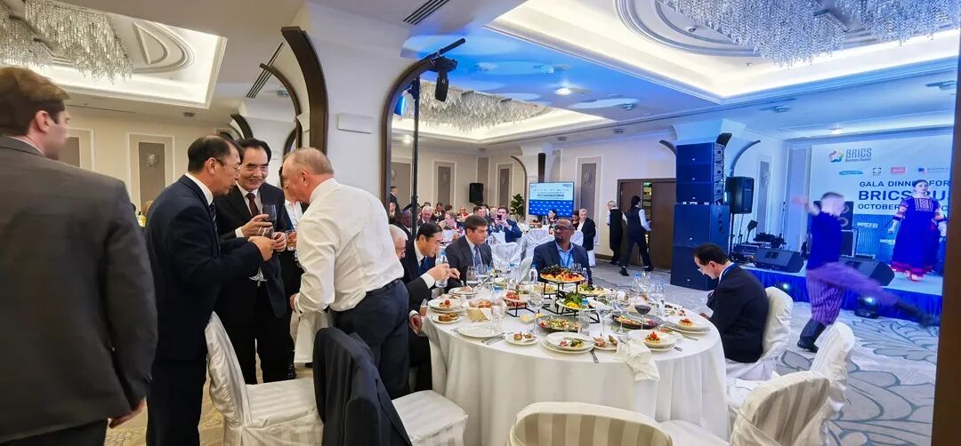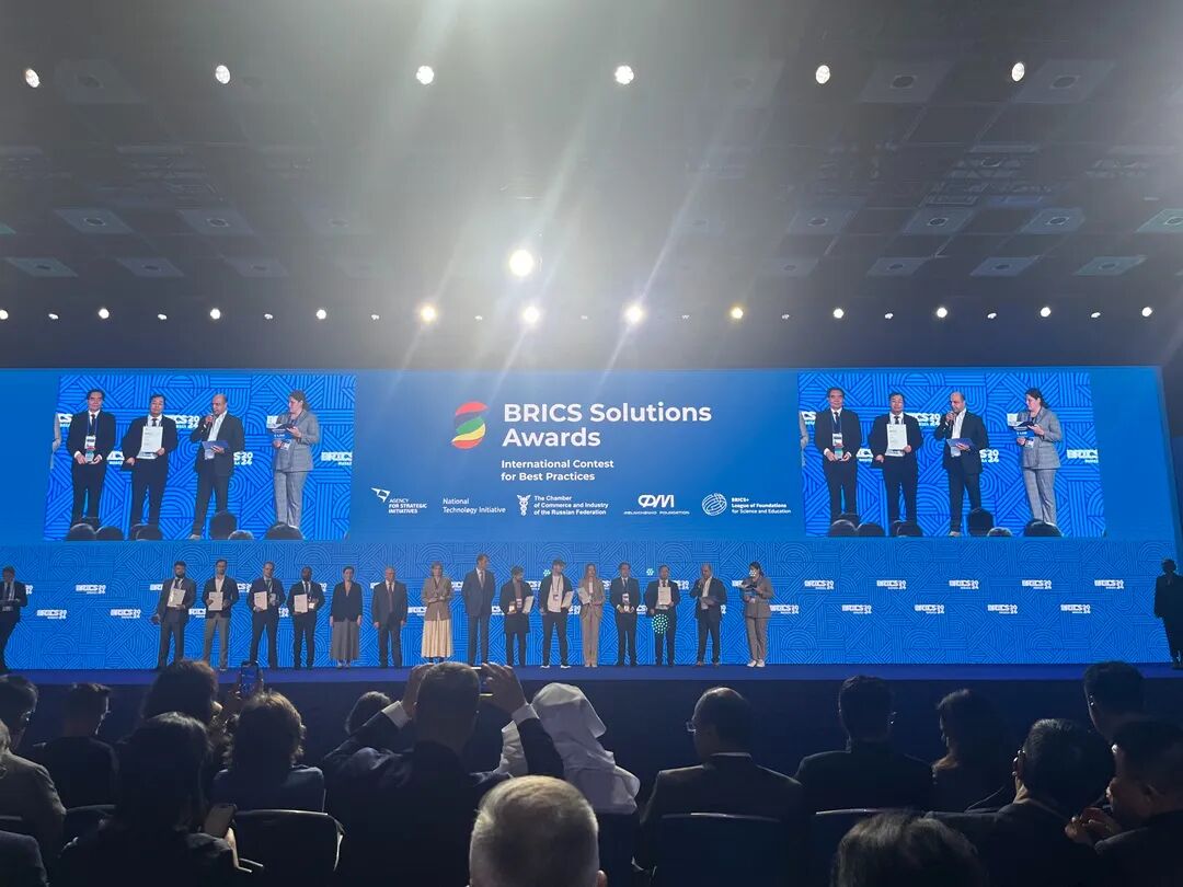 10月15日-20日,中国发明协会党委书记余华荣、金砖国家工商理事会技能发展、应用技术与创新中方工作组组长刘振英博士一行赴俄罗斯莫斯科,在我驻俄罗斯大使馆的协调指导下,出席金砖国家工商理事会年会、金砖国家工商论坛系列活动,并顺访俄罗斯有关部门和机构企业,加强了科技创新交流,增进友谊,共促新发展。10月16日代表团一行出席欧亚专利局与创新组织和发明家联盟“VOIR”、全俄罗斯发明家和创新者协会、妇女联盟以及欧亚专利局、欧亚专利律师协会共同举办的座谈会,欧亚专利局长助理、联盟会长及其他协会负责人参加了座谈,余华荣书记、刘振英组长及中方技能发展与技术创新工作组代表团全体9人出席。中俄双方介绍了各自的发明创新工作、青少年发明创新合作和专利成果转化应用等工作情况和进一步合作发展的意向,中俄双方交流合作,共谋新发展。会谈结束后,参观了有关企业。我驻俄使馆高度重视协会代表团赴俄参会和访问工作活动,周宇公使衔参赞亲自协调落实,岳萍秘书全程参加座谈活动。下午周宇公使衔参赞在大使馆与余华荣书记、刘振英组长一行座谈交流,共商助力科技创新发展和国际合作。10月17日-19日余华荣书记、刘振英组长一行全体人员参加了金砖国家技能发展、应用技术与创新工作组会议、金砖国家工商理事会年会、金砖国家工商论坛和2024金砖国家解决方案竞赛颁奖典礼及工商理事会俄罗斯招待会等系列活动。10月17日会议上,俄罗斯技创组组长AlinaSingh女士主持此次会议并致欢迎词,刘振英组长致辞。在此次会议上,金砖技创组汇报了2024年本组工作及进展情况,并形成7项成果设计,主要包括:金砖国家未来技能培训项目、金砖未来技能和技术挑战赛、标准制定和金砖技术与技能标准化工作委员会工作、技术合作开发和金砖技术平台倡议、金砖国家科技创新联盟建设等。与会代表对金砖技创组的工作给予高度评价,并期望继续深化落实技能发展与技术创新合作。同时,召开了金砖国家技术创新平台与未来技术发展趋势研讨会,刘振英组长参会并做主旨发言。金砖国家工商理事会年度会议在10月17日下午召开,金砖十国代表参加会议,听取各工作组2024年工作报告,并签署呈送金砖各国领导人的年度工作报告。10月18日,金砖国家工商论坛在俄罗斯首都莫斯科隆重开幕。俄罗斯总统普京出席论坛全会并发表讲话。普京表示,金砖国家已成为世界经济增长的主要驱动力。埃及、埃塞俄比亚、南非、伊朗总统均在论坛上发表讲话。本届论坛主题为“BRICS伙伴关系:加强多边主义以实现公平的全球发展和安全”,涵盖金融投资合作、国际贸易与物流连接、农业发展和粮食安全等议题,为推动金砖国家经贸合作行稳致远建言献策。10月18日在金砖工商论坛会议上,召开了2024金砖国家解决方案竞赛和金砖国家女性创业竞赛颁奖典礼。由厦门市金砖未来技能发展与技术创新研究院执行的标准化工作及金砖技术和技能标准化工作委员会项目被评为2024金砖解决方案竞赛最佳国际合作项目奖,这是本年度该奖项的最高奖。刘振英组长和余华荣书记上台领奖并与各国获奖代表合影留念。