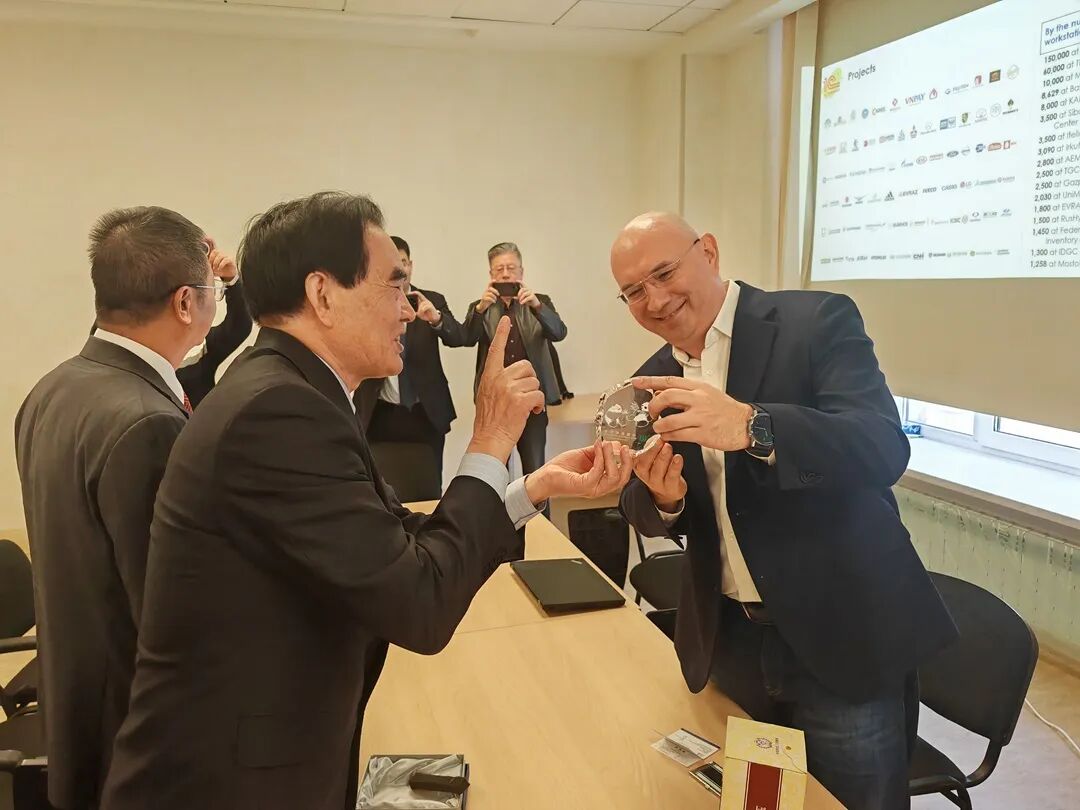 10月19日上午访问1C企业并座谈。会上将协会小熊猫纪念品赠送1C企业主席,双方友好合作交流。