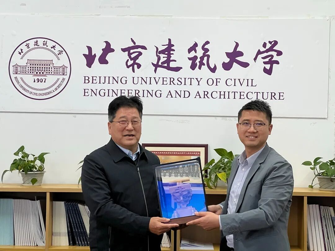 王万鹏处长详细介绍了北京建筑大学发展历程及创新情况,特别是在建筑科技、城市规划、环境工程等领域的最新研究成果和创新项目。近年来,北京建筑大学在建筑工业化、智能化、绿色化升级等方面取得了显著成就,科研成果不仅在国内外学术界获得了高度评价,还广泛应用于古北水镇、五棵松体育馆等实际工程项目中,为城市建设和社会发展做出了重要贡献。同时,学校的科研成果在国际展上取得了重大突破,首次荣获德国纽伦堡国际展金奖。